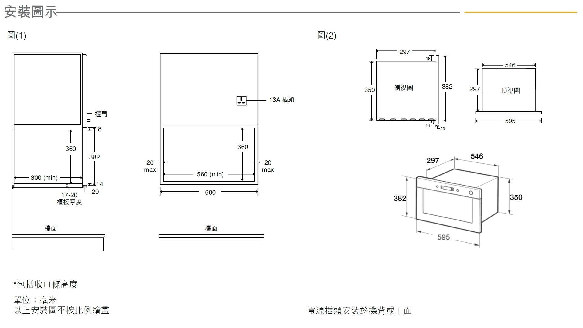開孔尺寸 (高x闊x深/毫米):360 x 560 x 300