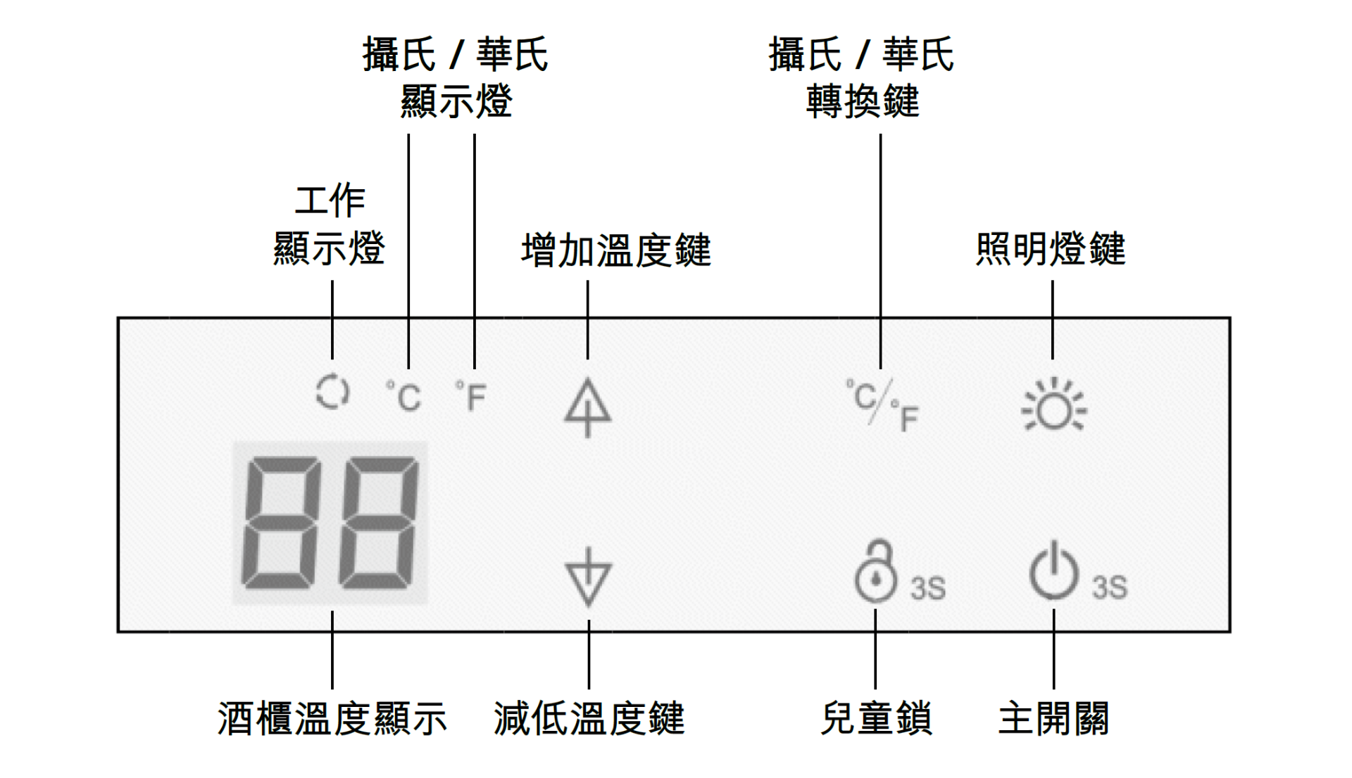 可儲存酒瓶數目:18瓶 (最多 23瓶) (儲酒量以波爾多種類0.75公升的酒瓶為準,並因應層架數目及擺放方法而異。若附有防潮盒,儲酒量亦會有所影響)