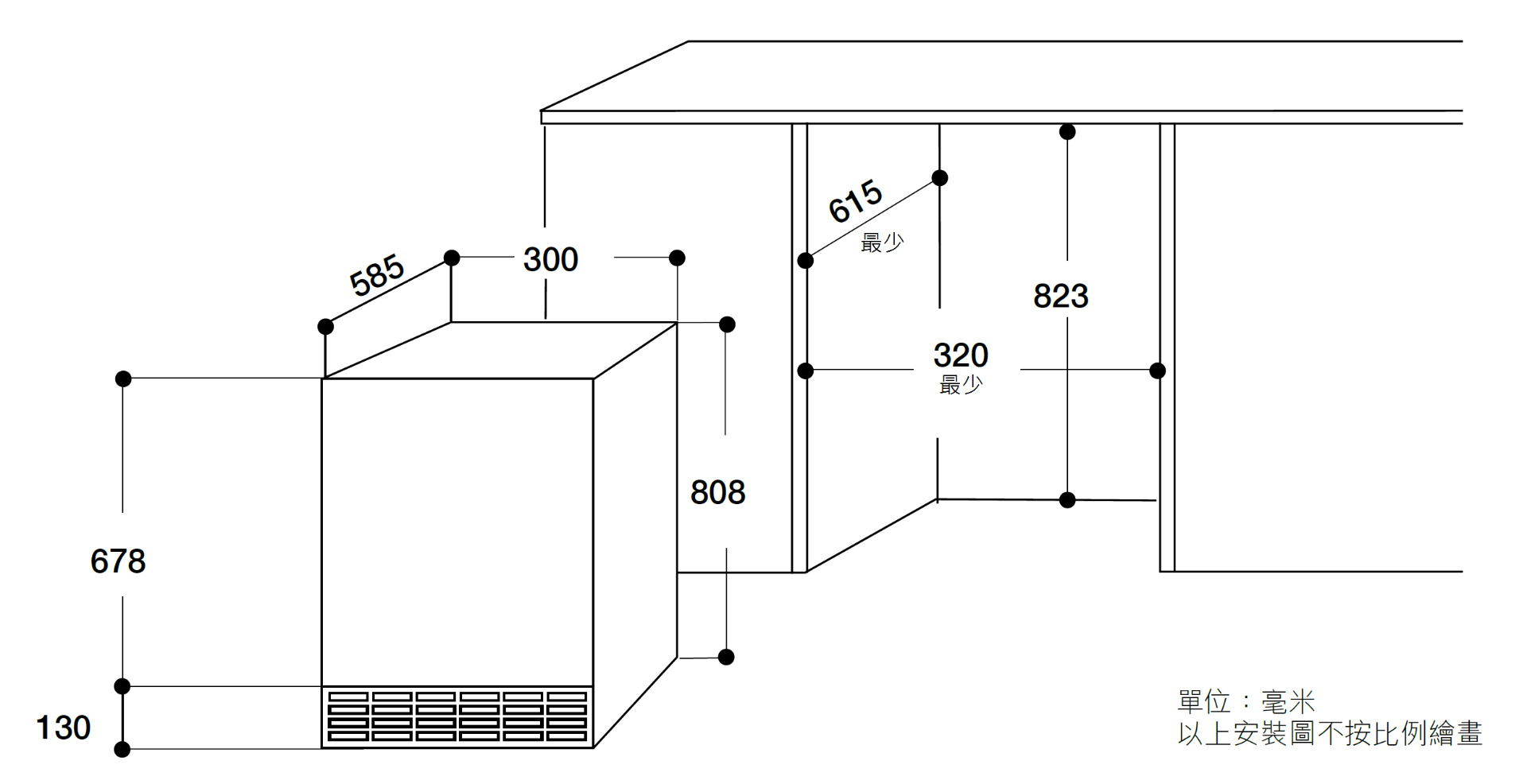 開孔尺寸 (高x闊x深/毫米):823 x 320 x 615
