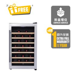 可儲存酒瓶數目:40 瓶 (儲酒量以波爾多種類0.75公升的酒瓶為準,並因應層架數目及擺放方法而異。若附有防潮盒,儲酒量亦會有所影響)