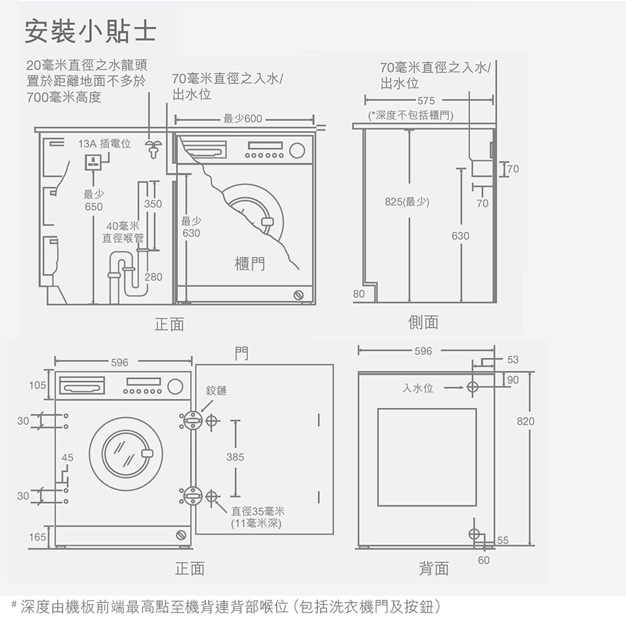 產品呎吋 - 包括機門及按鈕 (高x闊x深/毫米):820 x 596 x 570