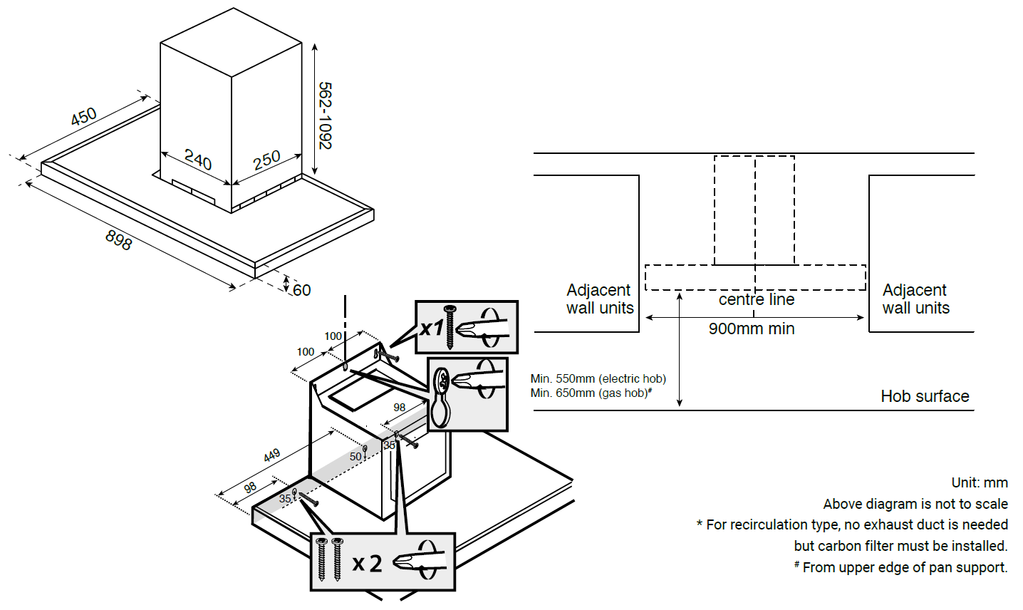 Product Dimensions (HxWxD/mm):622-1152 x 898 x 450