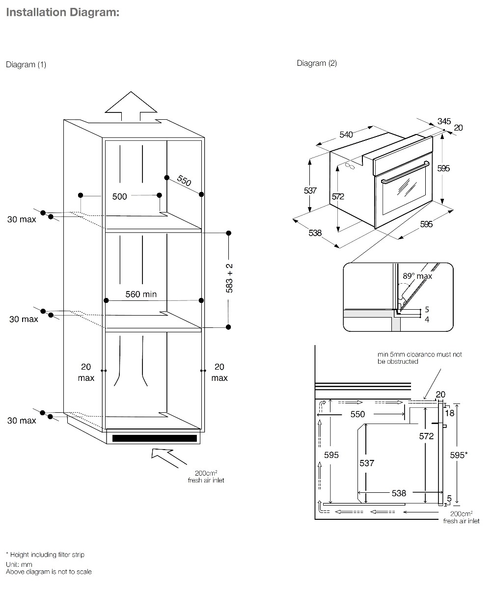Cut Out Dimensions (HxWxD/mm):583-585/595 x 560 x 550