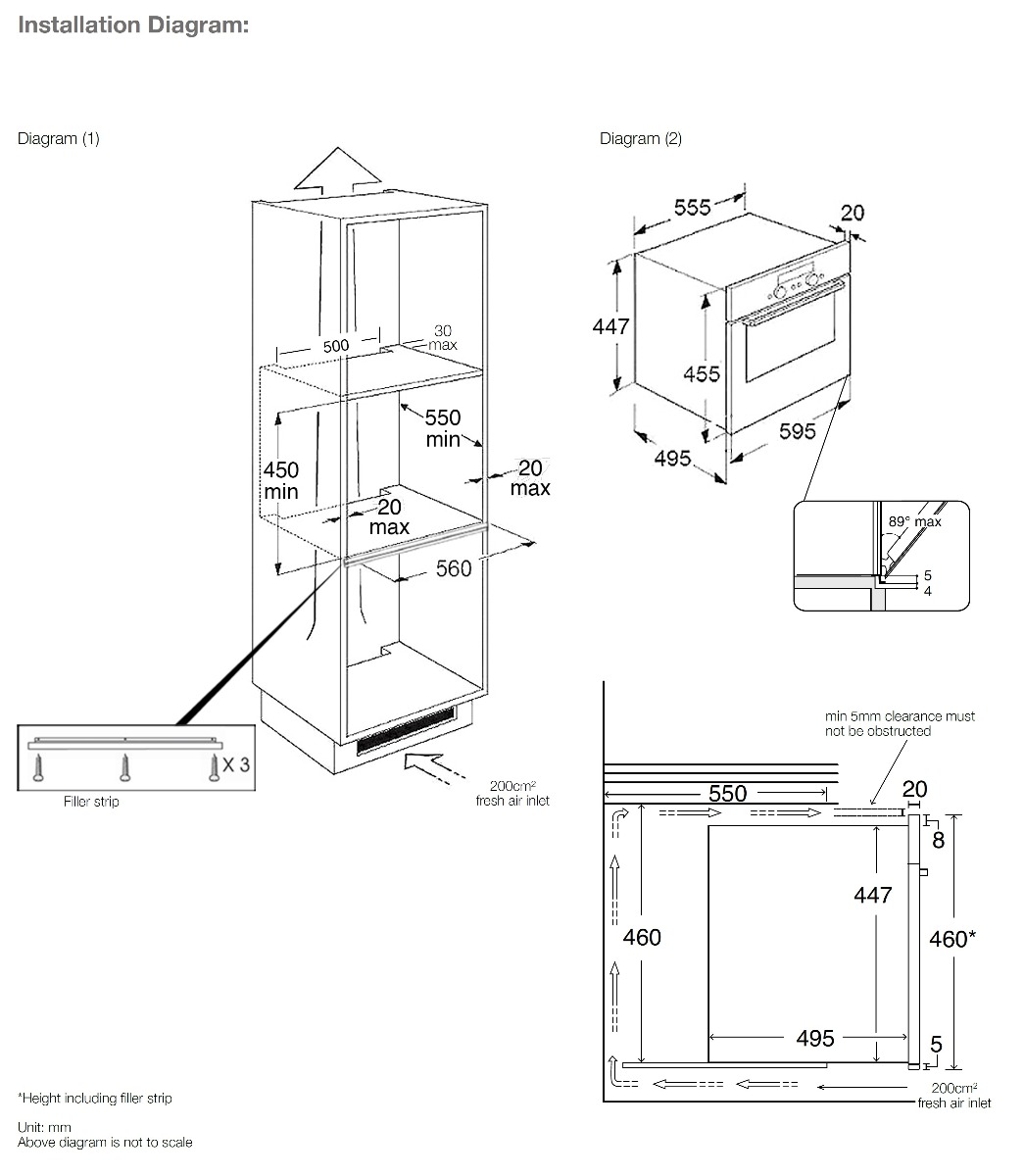 Cut Out Dimensions (HxWxD/mm):450/460 x 560 x 550